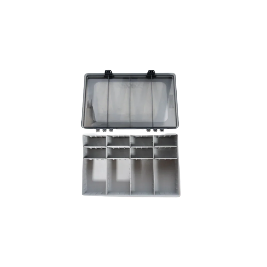 BKK OCD Tackle Storage System An optimized containment device for BKK Armor Point hooks or fishing accessories, the BKK OCD Tackle Storage System is the ultimate companion for keeping your terminal tackle organized and easy to locate. Designed with unique compartments to hold Armor Point Hook and Accessory boxes or the original boxes backer card, the OCD Accessory box uses a front and side labelling system that allows you to instantly identify the contents for quick and effortless tackle selection. Β Built from a thick and strong polypropylene material for improved durability, each OCD Tackle Storage System includes a soft waterproof gasket and strong latches for a watertight seal that keeps the moisture out. Perfect for the obsessively compulsive anglers who fish BKK hooks, the BKK OCD Tackle Storage System includes fully adjustable compartments that allow anglers to customize up to 80 small boxes, 44 medium boxes, or any combination of sizes in between. Β Dimensions: 13β x 8.59β x 2.56β Β β Optimized for use with Armor Point Hook Storage Boxes β Customizable Layout β Heavy-duty Polypropylene Construction β Soft Waterproof Gasket