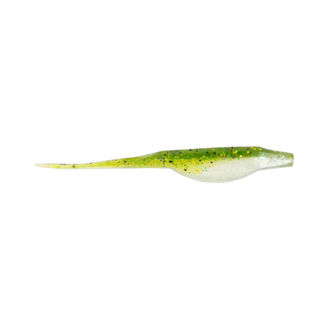 The Fingerling is our next generation of soft plastic jerkbaits that delivers an erratic darting action when you twitch it and a side-to-side wobble when letting it fall on a slack line. It features an angular design, with hard lines and a deep belly that adds weight for casting, and a more lifelike baitfish profile. The horizontal hook guards at the top of the bait enable you to skin hook it and keep the hook bend level with them aiding in weedless presentations.