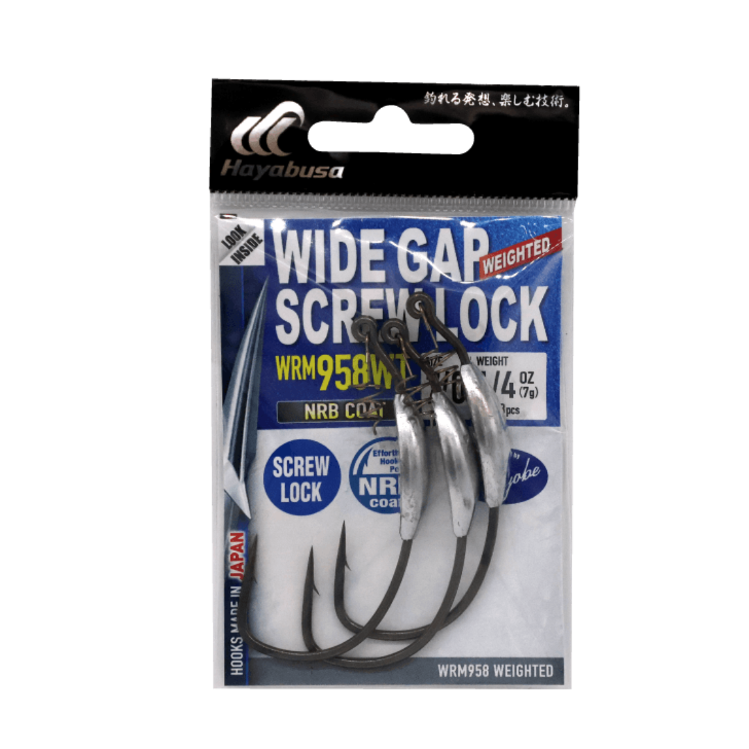 Pro bass angler Ken Iyobe and Hayabusa Fishing worked together to create the smoothest, most effective weighted wide gap screw lock fishing hook in the fishing industry. The WRM958 Weighted Hook introduces bass fishermen to a highly evolved weighted wide gap fishing hook that can be used with a variety of artificial soft plastic baits. The tapered screw lock expands from thin to wide to ensure soft baits stay attached and do not rip as easily. The entire product series is manufactured with revolutionary NRB material, too!