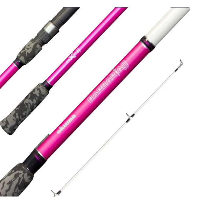 The new Okuma Barbarian rods are designed to be perfectly balanced with the Barbarian Bait Feeder reels. Available in both black or pink/white for the fairer sex, the Okuma Barbarian rods feature a carbon blank with eye-catching black/grey camo grips. Available in 10ft and 12ft models with a medium fast action to suit most casting styles.