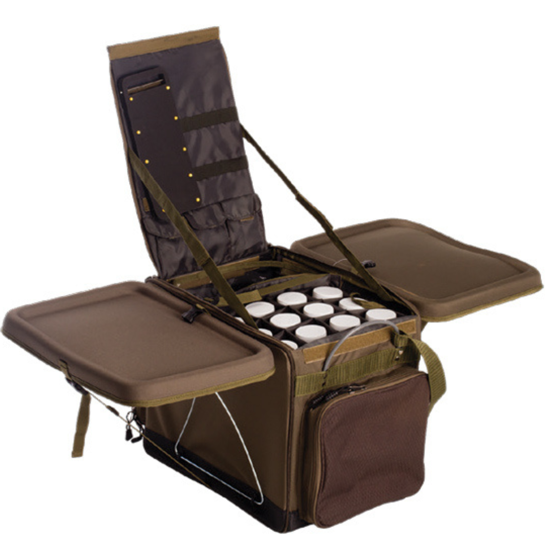 - Divided internal storage compartment for mutis and/or reels