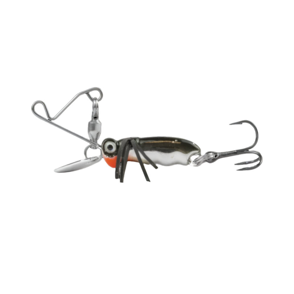 Sensation’s Locust spinner is a great imitation when bass are keying in on downed dragonflies, flying ants, locusts, or other flying insects. It features a realistic profile, living rubber legs and a single Colorado blade to deliver subtle vibration and flash. Its best fished on lighter line and spinning gear and the bonus is that it will target a wide array of species. Available in Gold, Perch, Firetiger and Cricket colour patterns it features 3D Eyes and is fitted with VMC #10BN Hooks.